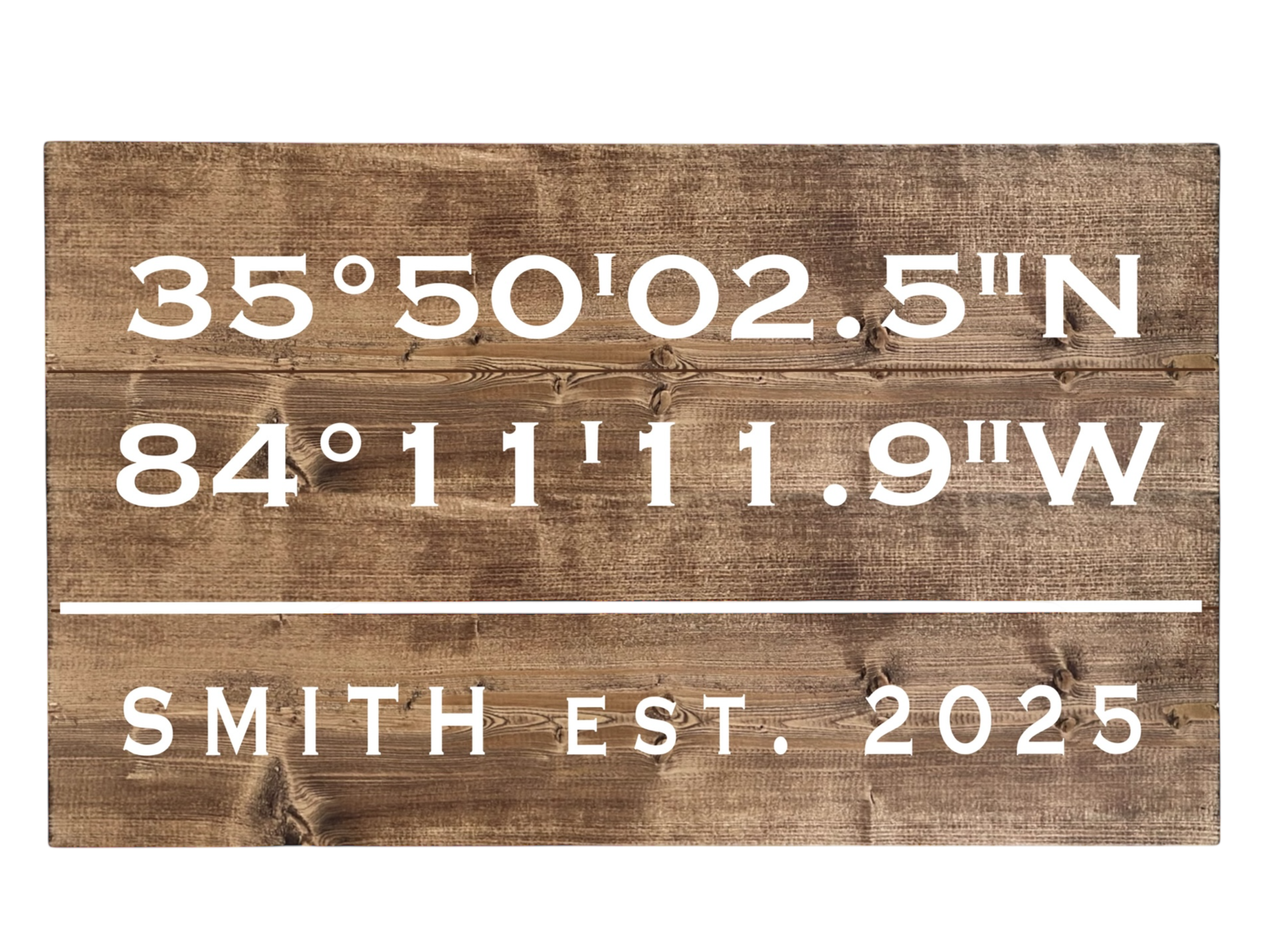 Just provide an address- city and state included- and we'll find the coordinates for you! Customize the third line with a name or phrase of your choice The Jones Lake House, Home Sweet Home, etc. A proof is not automatically sent unless requested at checkout, in which case a digital proof will be emailed to you within 48 hours for approval before production.
