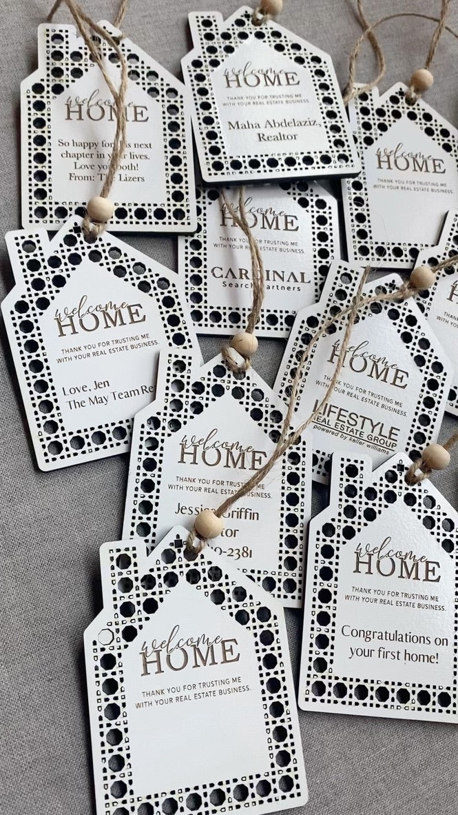 -Note: Tag will automatically read "Welcome Home. Thank you for trusting me with your real estate business." unless otherwise specified in the personalization box
